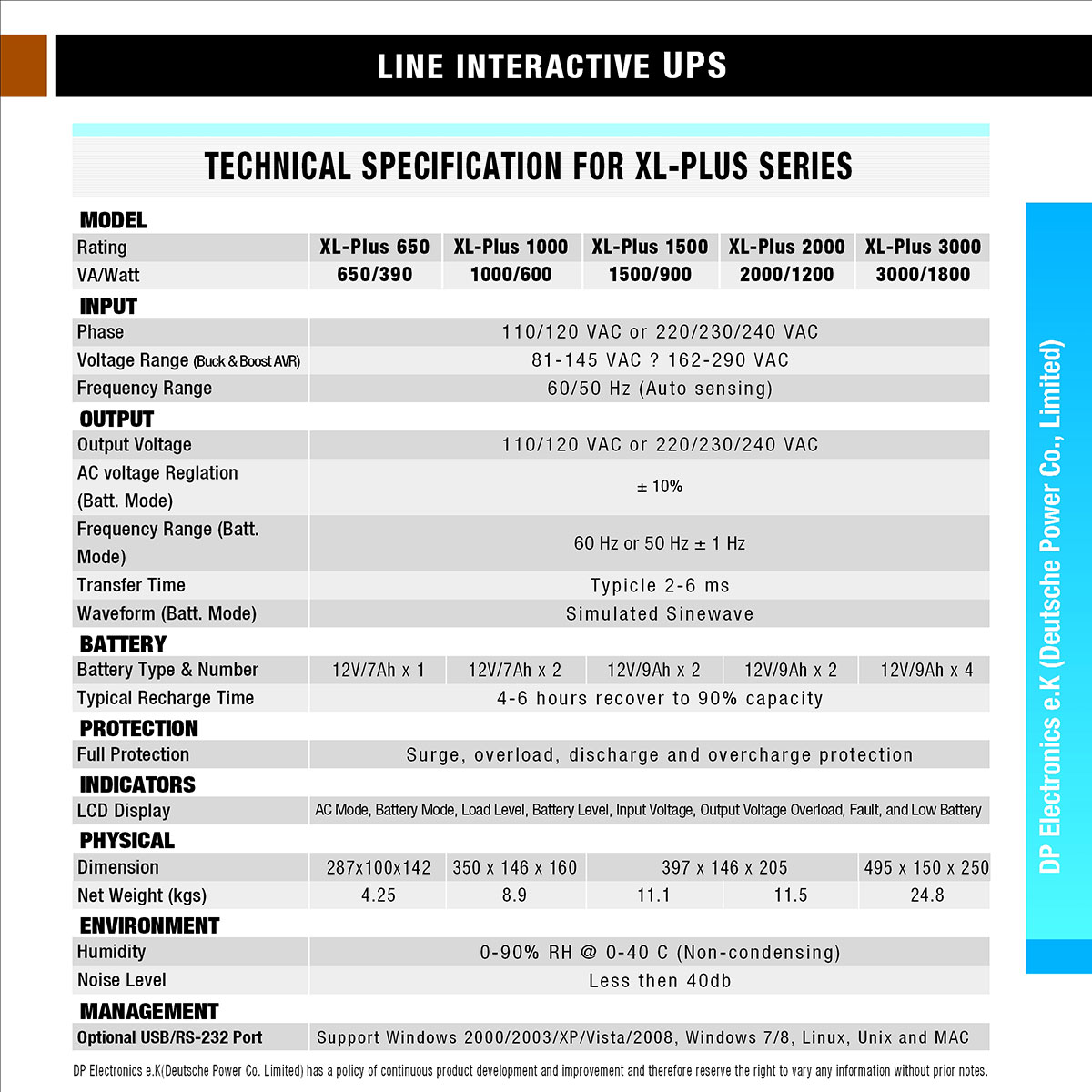 XL Plus compact design makes this UPS different from other similar Products.Its reduced dimensions is easily integrated into offices environment and low space areas.