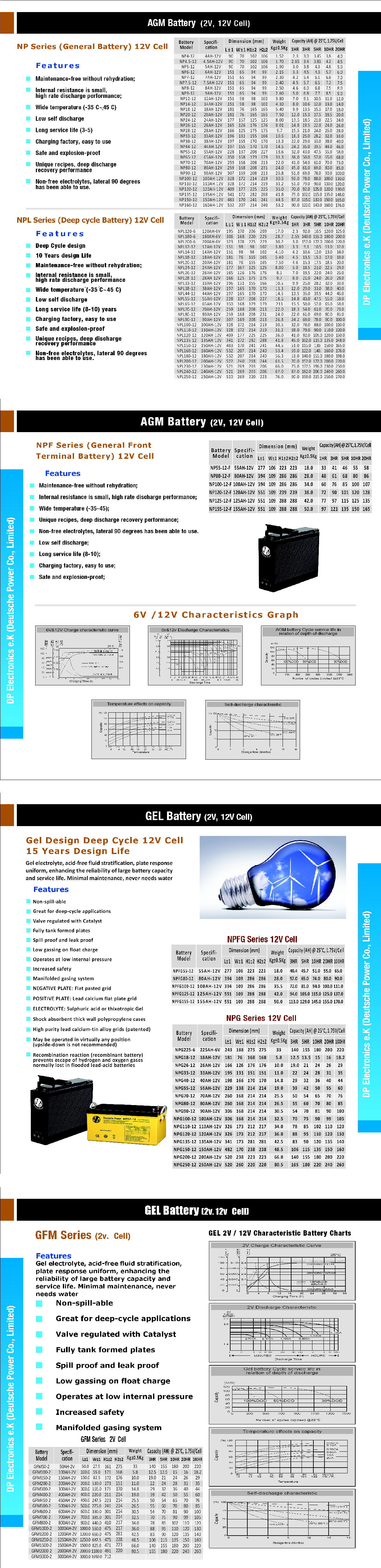 Because of the use of lead calcium alloy grids, Deutsche Power battery has less than 3% self-discharge monthly at room temperature of 25C and it can be stored for long periods of time without recharge.
