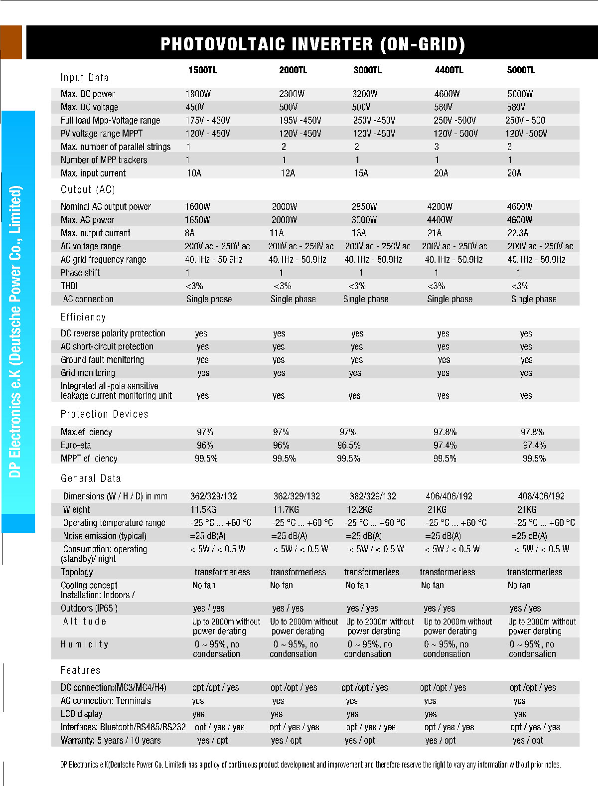 High Efficiency In view of system capacity and the total ownership cost, DC bus voltage is designed (12V/24V/48V/96V/110V) to reduce power lost and work with the optimized efficiency.